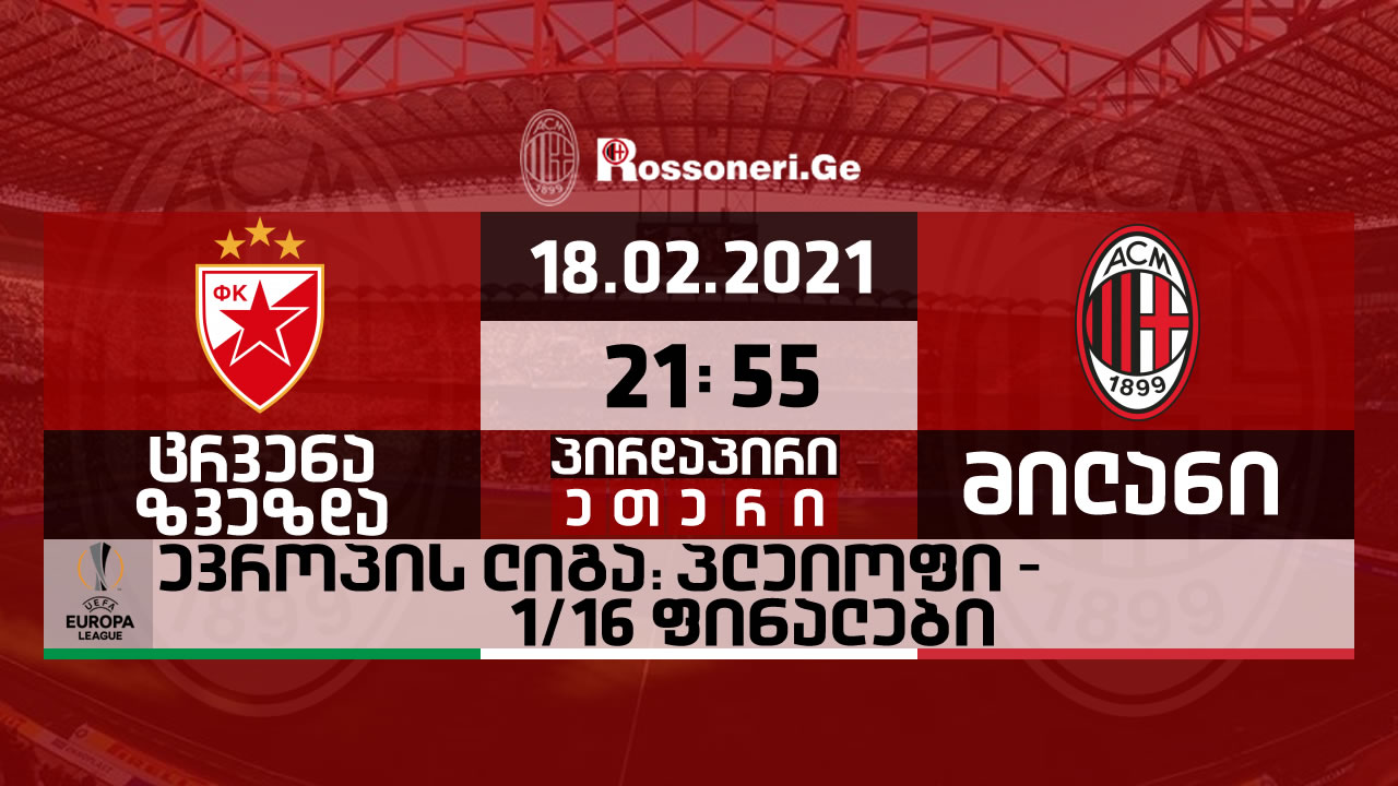 LIVE ცრვენა ზვეზდა - მილანი 18.02.2021 21:55
