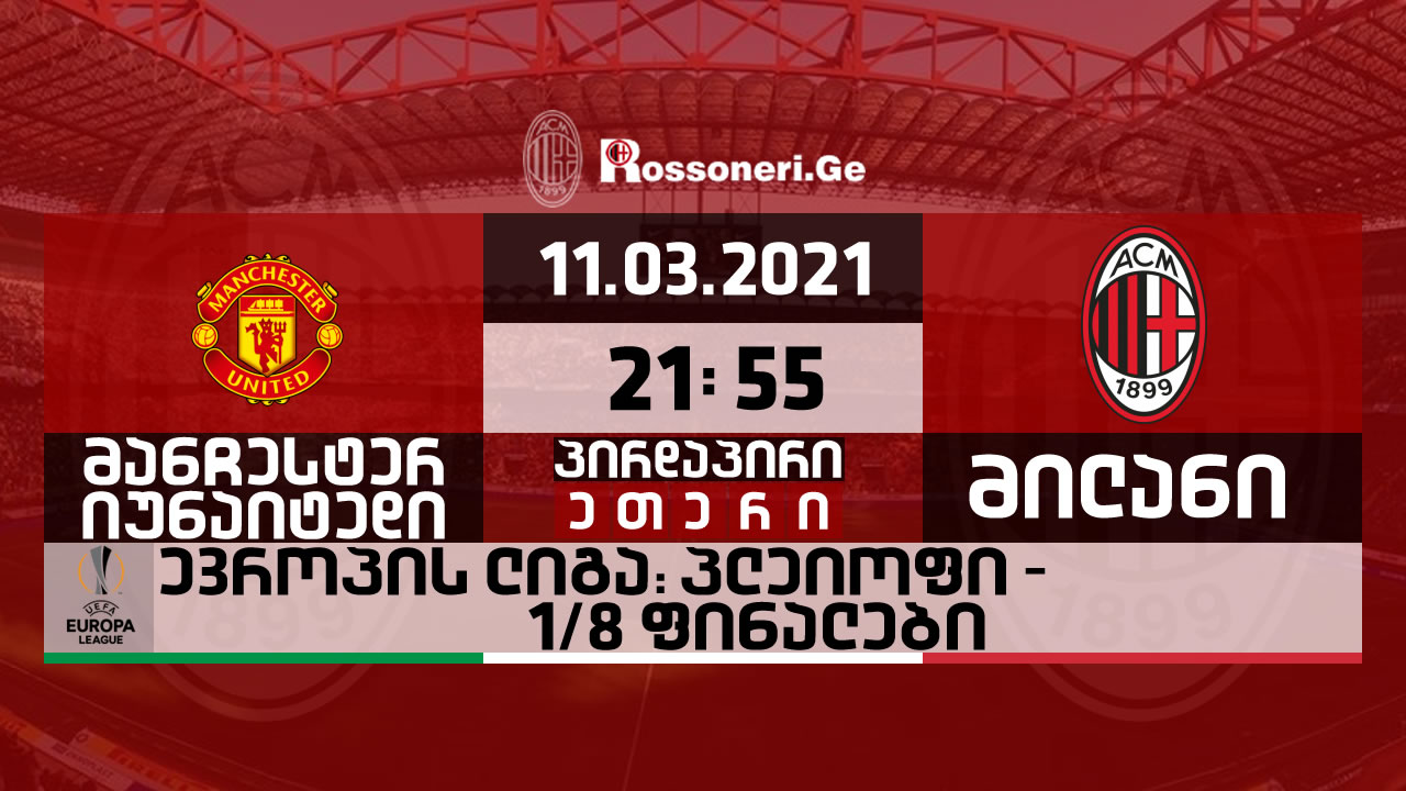 LIVE მანჩესტერ იუნაიტედი - მილანი 11.03.2021 21:55
