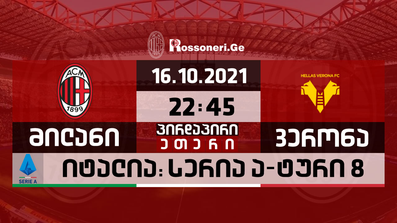 LIVE: მილანი - ვერონა 16.10.2021 22:45