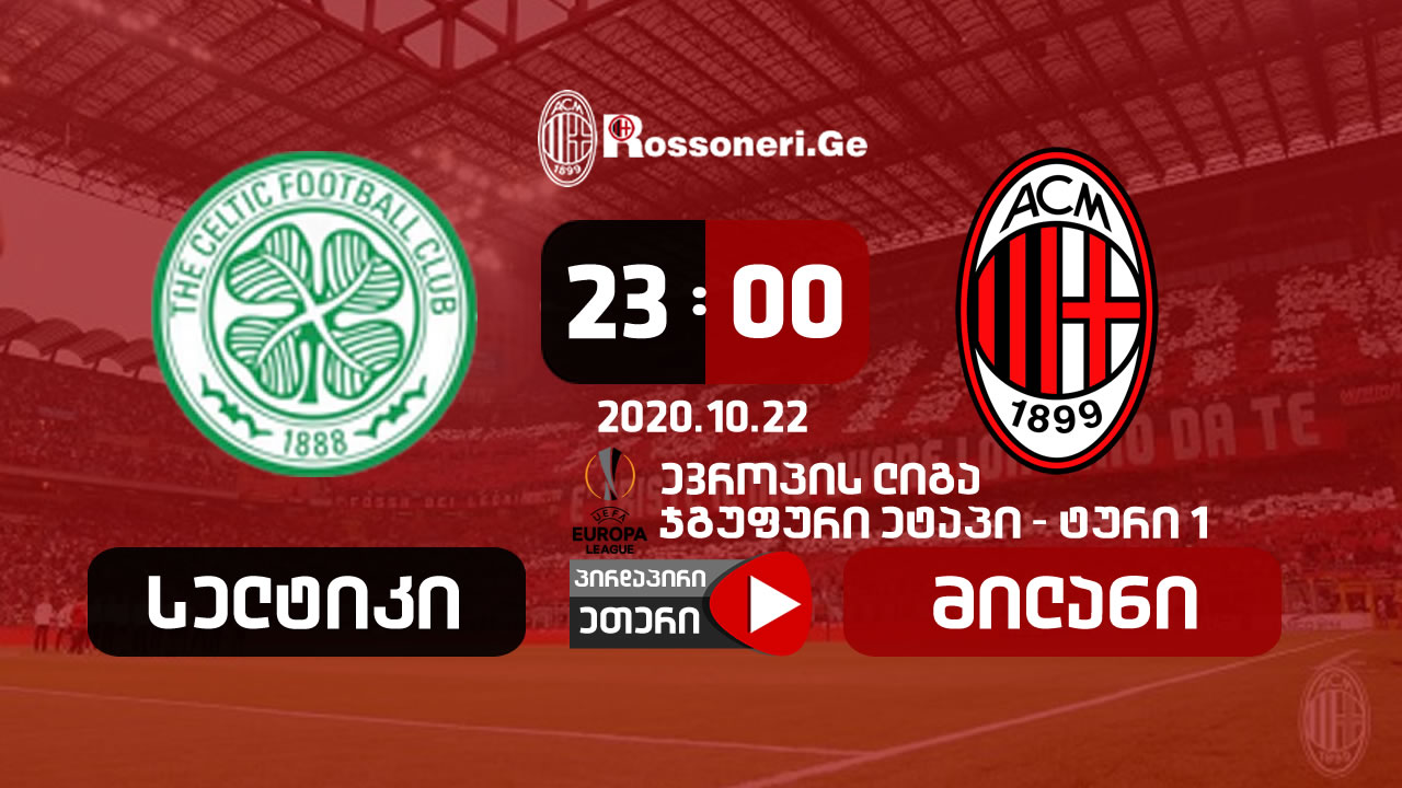 LIVE სელტიკი - მილანი 22.10.2020 23:00