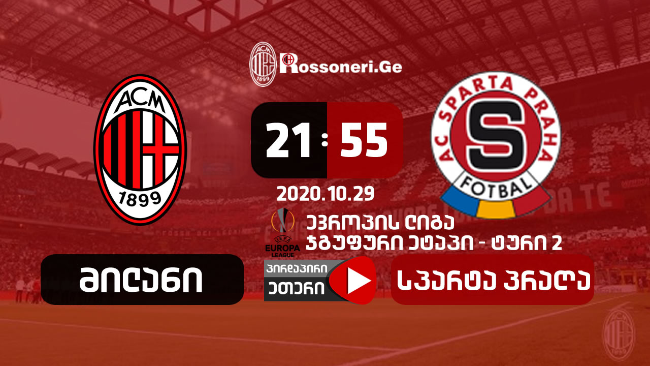LIVE მილანი - სპარტა პრაღა 29.10.2020 21:55