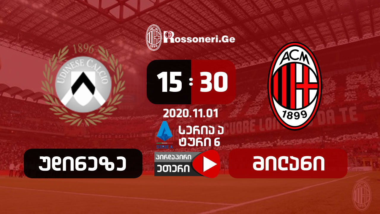 LIVE უდინეზე - მილანი 01.11.2020 15:30